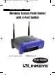 BEFW11S4 VER 3 USER GUIDE_2nd.qxd 10/15/02 10:33 AM Page 6 Instant WirelessTM Series Chapter 1: Introduction The Linksys Wireless Access Point Router with 4-Port Switch Congratulations on your purchase of a Wireless Access Point Router with 4Port Switch. The Wireless Access Point Router with 4-Port Switch provides the ideal solution for connecting your wireless network to a high-speed broadband Internet connection and a 10/100 Fast Ethernet backbone.