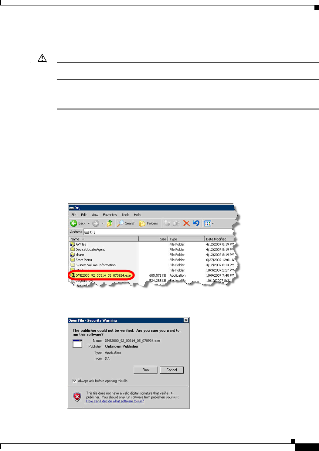 a. To confirm that the upgrade file was copied successfully to the root folder of the DME D: drive, open
