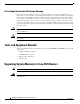 Upgrading System Memory in Cisco 3745 Routers Figure 10 Removing and Installing SDRAM SODIMMs in the Cisco 3745 Router Pull the tabs away with your thumbs, bracing your forefingers against the rails. The memory module will pop loose. Then raise the memory module to a vertical position. 48065 Memory module Step 4 When both ends of the SODIMM are released from the socket, grasp the ends of the SODIMM with your thumb and forefinger and pull it completely out of the socket.
