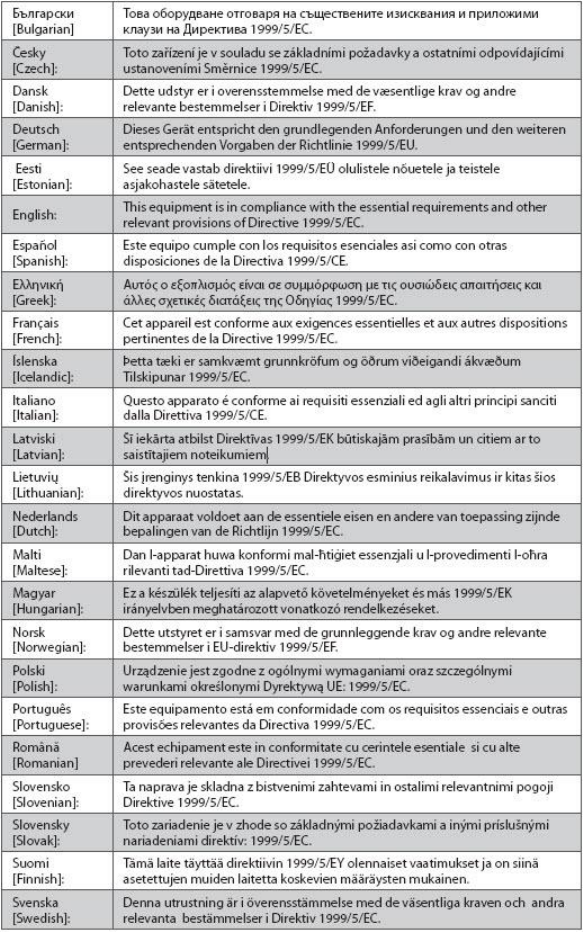 Declaration of Conformity with Regard to the EU Directive 1999/5/EC