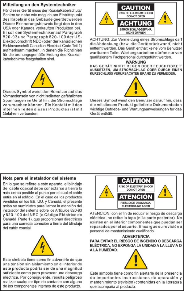 Fachpersonal bestimmt. Um die Gefahr eines elektrischen Schlags zu reduzieren, sollten Sie keine