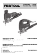 Accessories, tools For safety reasons, only use original FESTOOL accessories and tools! The accessory and tool order number can be found in your FESTOOL catalog + Internet. Festool guide system FS The use of the Festool guide system FS facilitates the production of straight and precise cuts, particularly with material thicknesses up to 20 mm / 3/4. To do this, the jigsaw is placed in a guide stop (13.1), order no. 490 031) and guided along the guide rail.