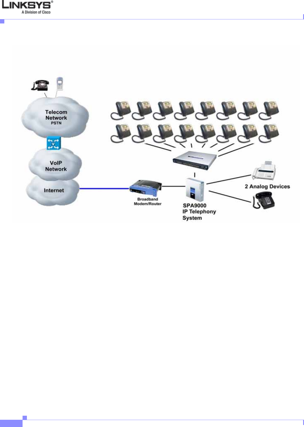 Figure 1-1 Linksys IP Phones in a VoIP Network