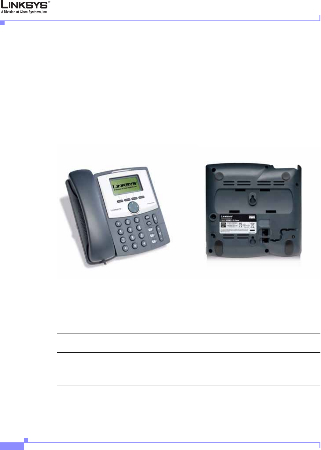 The SPA921 has one RJ-11 phone port and one 100BaseT RJ-45 port for connecting the phone to the