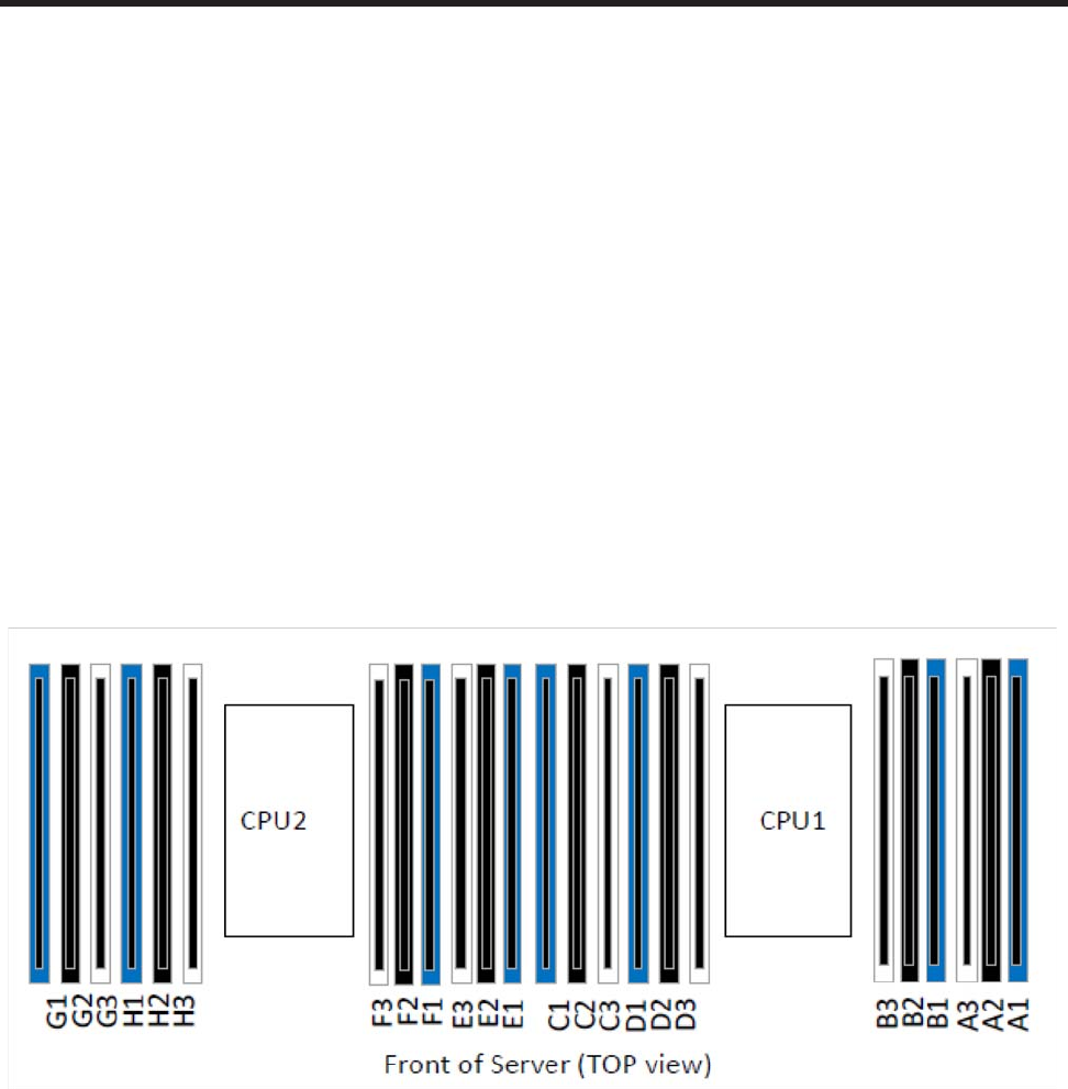 As an example, DIMM slots A1, B1, C1, and D1 belong to slot 1, while A2, B2, C2, and D2 belong to slot 2.