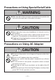Precautions on Using Special Serial Cable WARNING ● With one side of the connector connected to this product, do not touch the metal part of the other connector. CAUTION ● Static electricity may cause breakdown of internal circuit of this product. ● Do not leave this product with a cable wound around it for a long time. Disconnection or discoloration may result. ● Plugging and unplugging the contactor shall be done securely in the correct direction.