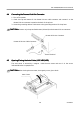 (4)While putting the ribbon in between the head cover and platen, push the locking claws into