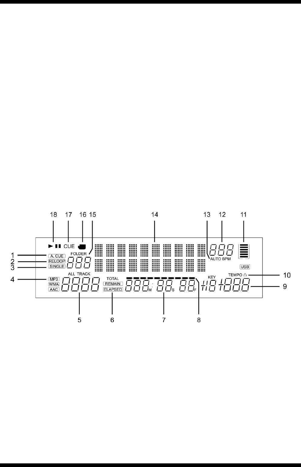 1. A.CUE INDICATOR – This will indicate if the player is in AUTO CUE mode or not. Press