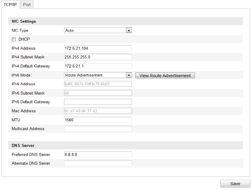 2. Configure the basic network settings, including the NIC Type, IPv4 or IPv6 Address,