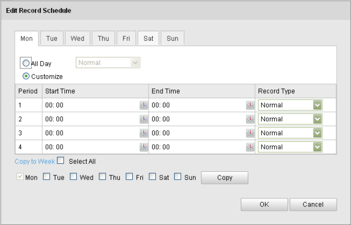 1. If you want to configure the all-day recording, select the All Day checkbox. If you