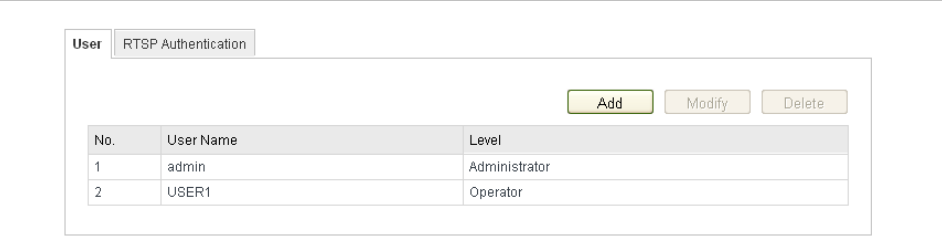 Note: The admin user has access to create, modify, and delete other accounts. Up to