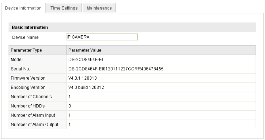 Other information of the network camera, such as Model, Serial No., Firmware Version,