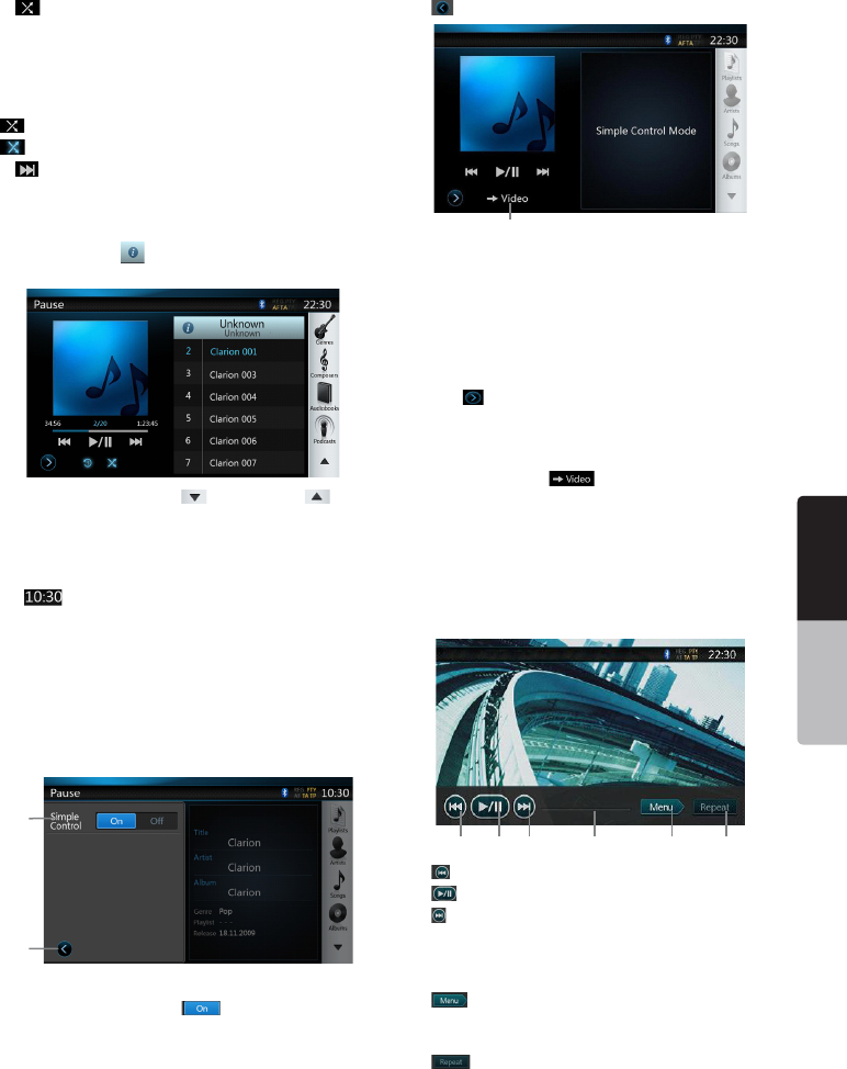 Spur“, „Wiedergabe/Pause“ und „nächste Spur“ zur
