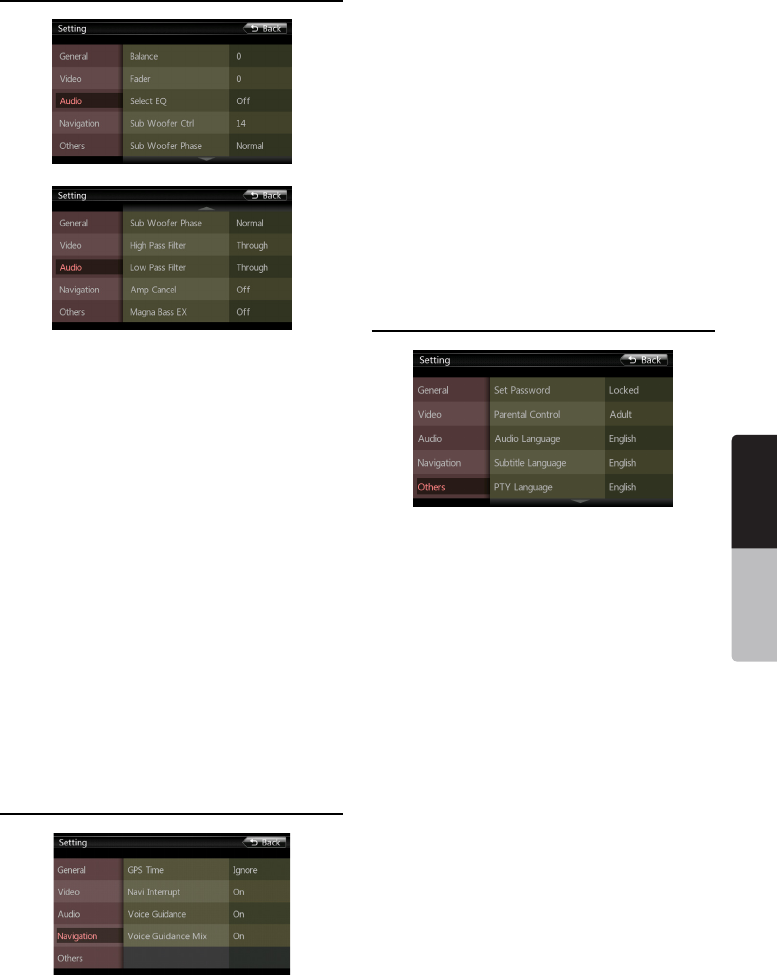 Dieses Menü enthält folgende Einstellungen: Balance,