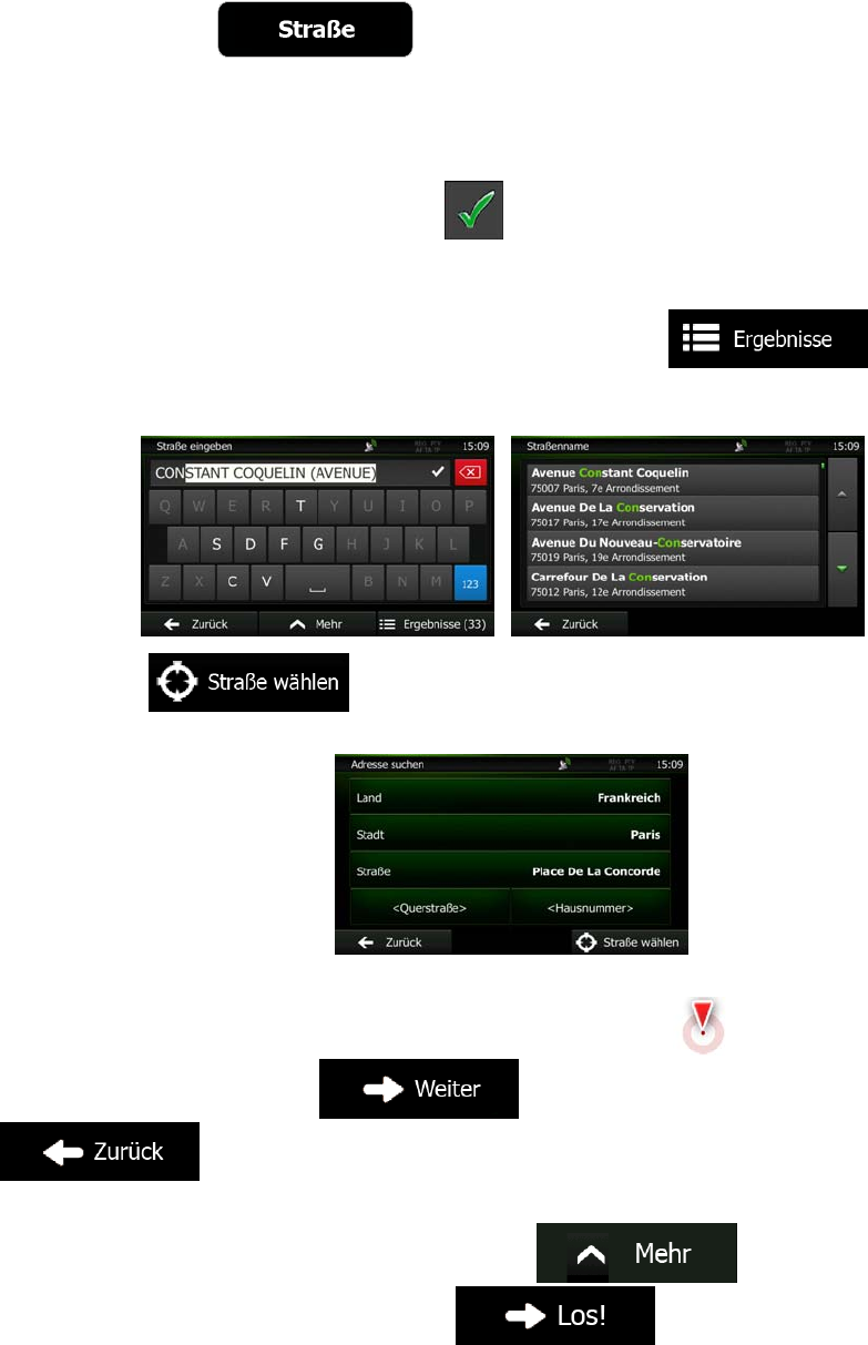 • Der am ehesten zutreffende Straßenname wird immer im Eingabefeld angezeigt.