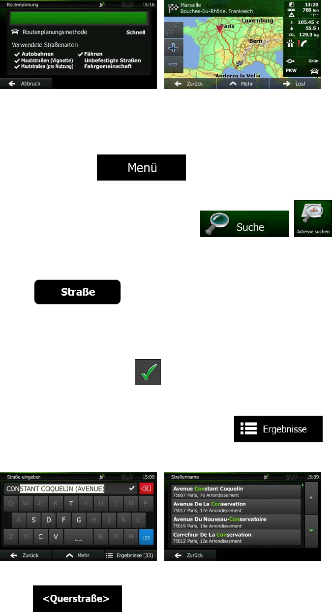 • Wenn es nur wenige Querstraßen gibt, werden diese sofort aufgelistet.