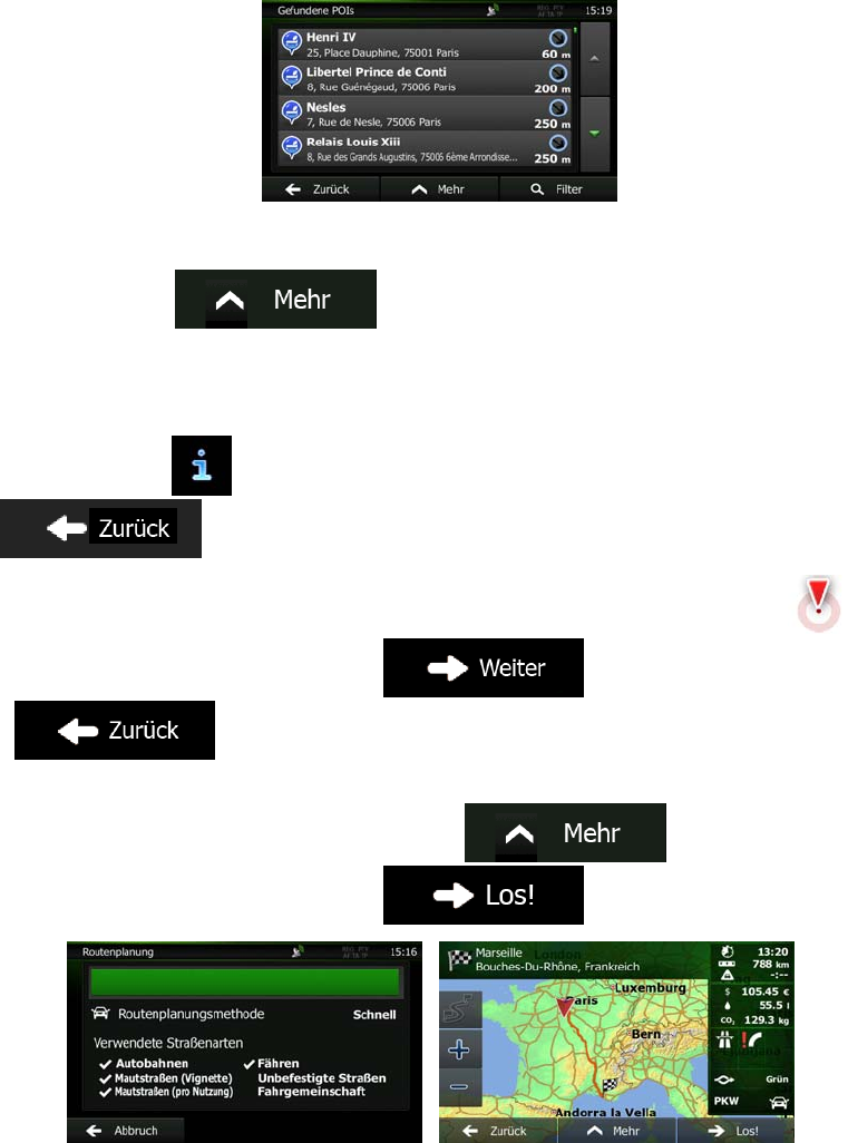 5. [optional] Die Sonderziele in der Liste sind nach ihrer Entfernung von Ihrer aktuellen bzw. der