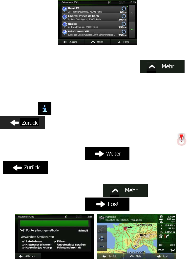 10. [optional] Die Sonderziele in der Liste sind nach ihrer Entfernung von Ihrer aktuellen bzw. der