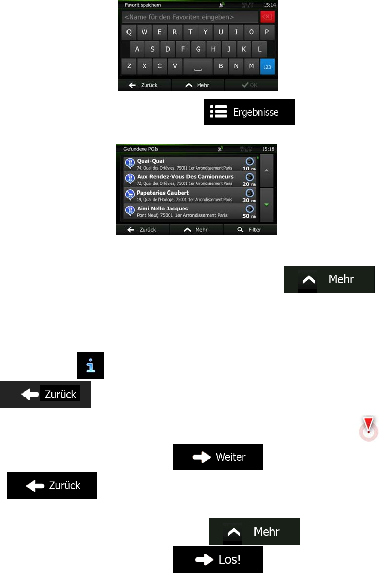 11. [optional] Die Sonderziele in der Liste sind nach ihrer Entfernung von Ihrer aktuellen bzw. der