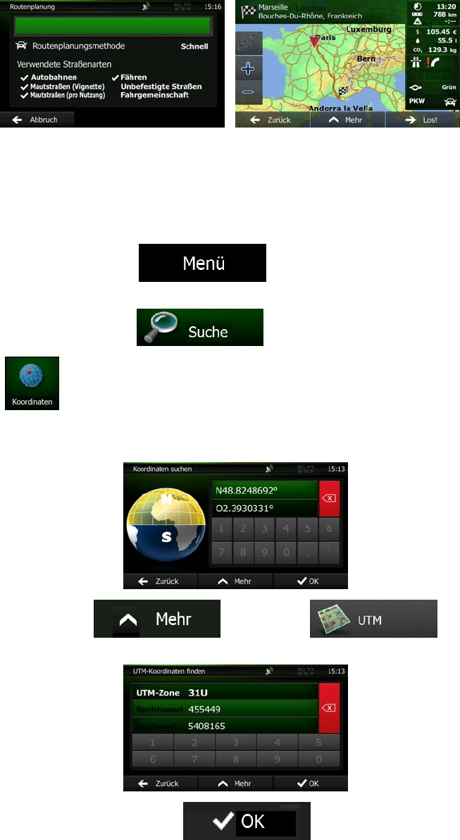 Sie können Ihr Ziel auch durch Eingabe seiner Koordinaten wählen. Gehen Sie wie folgt vor: