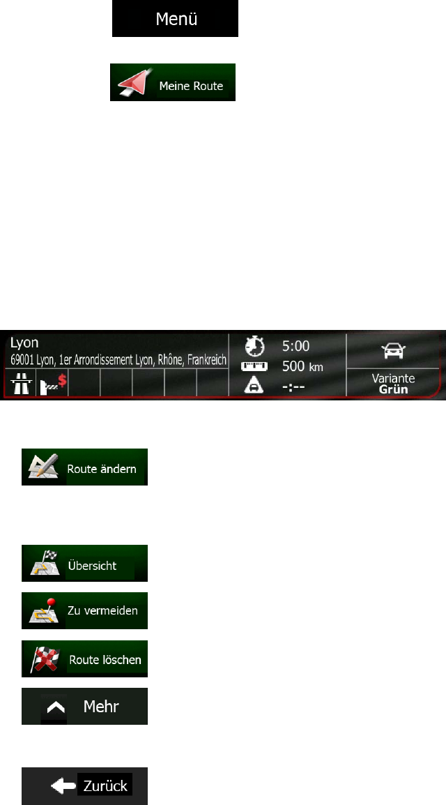 können Sie unter anderem eine alternative Route wählen, die Routenparameter ändern, die