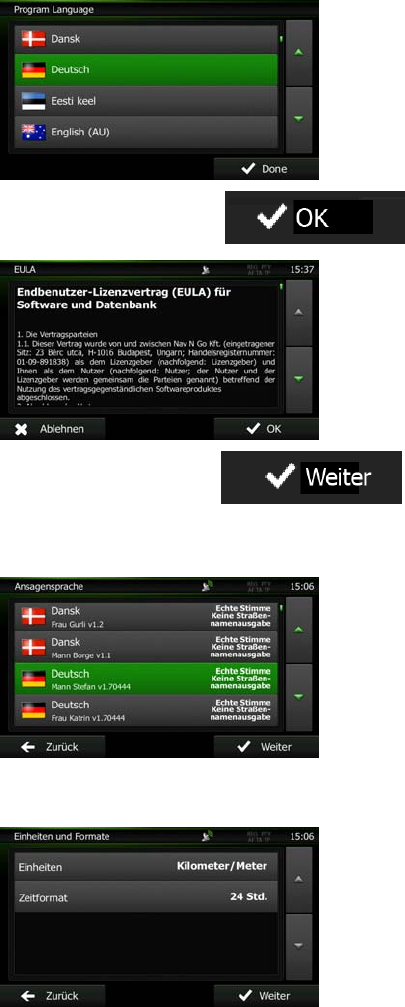 Wenn Sie die Navigationssoftware zum ersten Mal in Gebrauch nehmen, wird der anfängliche