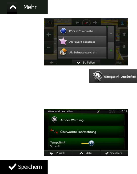 Sie können einen zuvor gespeicherten oder hochgeladenen Warnpunkt (z. B. ein Radargerät oder einen