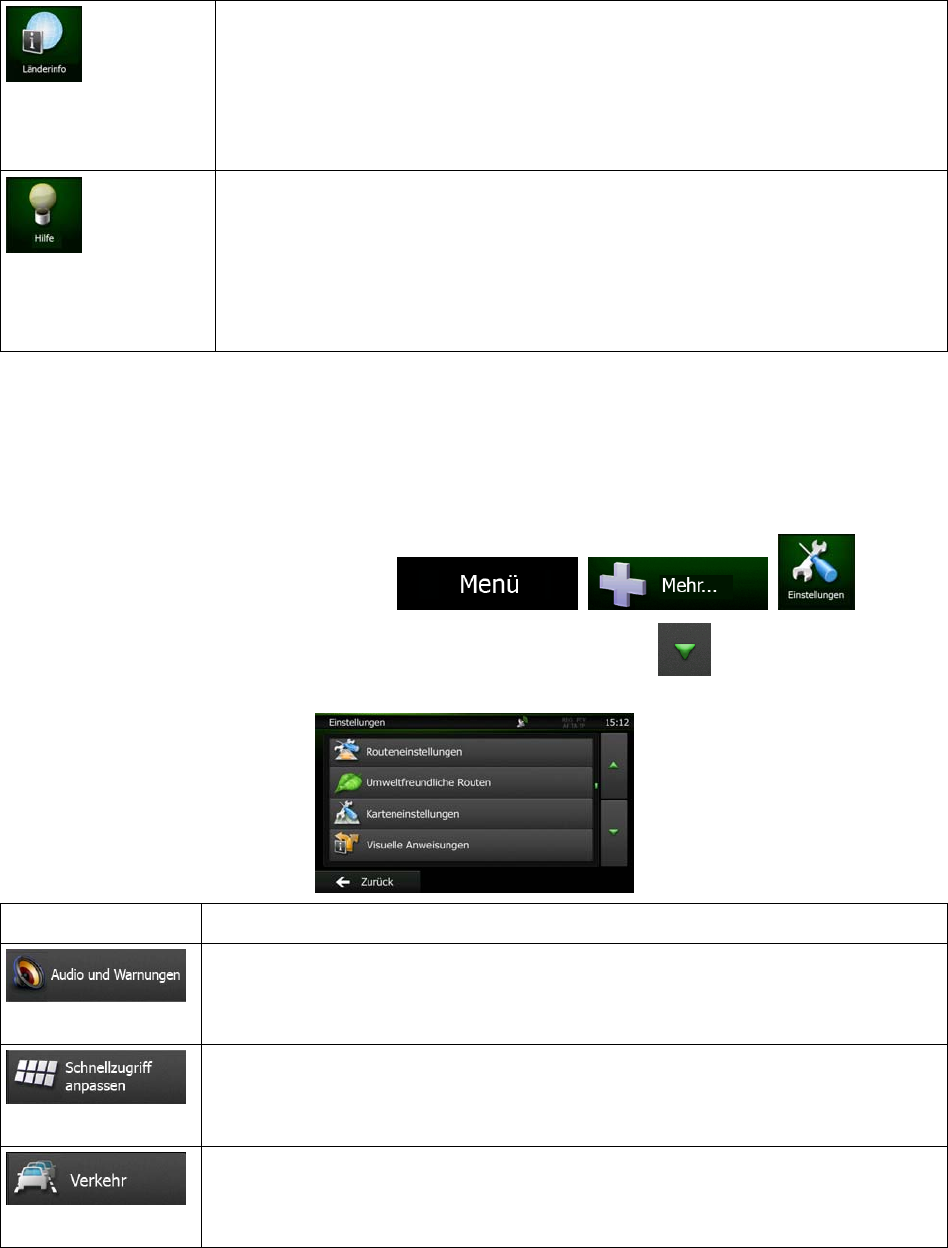 Sie können die Programmeinstellungen konfigurieren und das Verhalten von Clarion Mobile Map ändern.