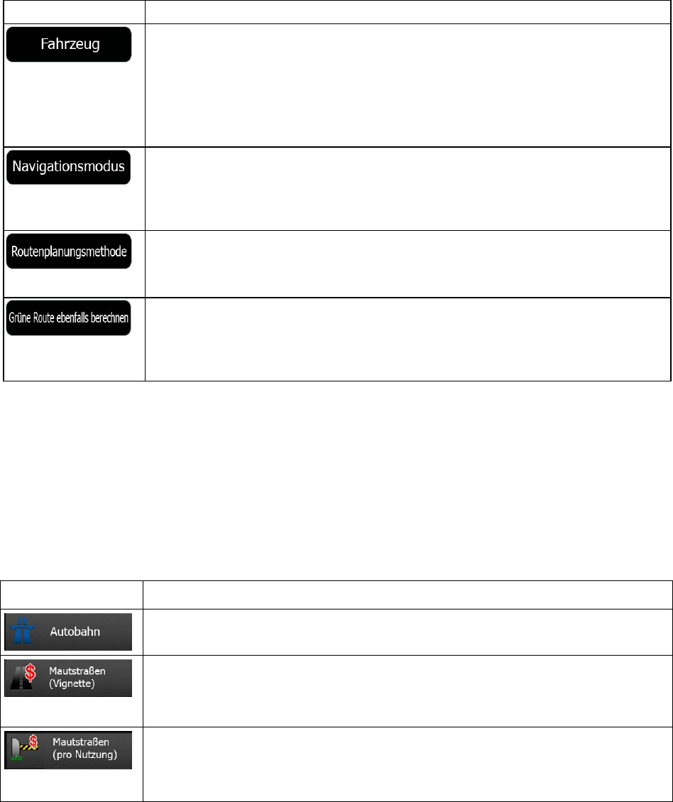 Wenn eine andere Routenberechnungsmethode als „Grün“ gewählt wurde, können