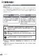 ご使用の前に 安全に正しくお使いいただくために 絵表示について この取扱説明書の表示では、製品を安全に正しくお使いいただき、あなたや他の 人々への危害や財産への損害を未然に防止するために、 いろいろな絵表示をして います。その表示と意味は次のようになっています。内容をよく理解してから本 文をお読みください。 警告 この表示を無視して、誤った取り扱 いをすると、人が死亡または重傷を 負う可能性が想定される内容を示し ています。 注意 この表示を無視して、誤った取り 扱いをすると、人が傷害を負う可 能性が想定される内容および物的 損害のみの発生が想定される内容 を示しています。 絵表示の例 記号は警告・注意を促す内容があることを告げるものです。 図の中などには具体的な注意内容(左図の場合は指はさまれ注意) が描かれています。 記号は禁止の行為であることを告げるものです。 図の中などには具体的な禁止内容(左図の場合は分解禁止)が描か れています。 記号は行為を強制したり指示する内容を告げるものです。 ● 安全のため、ご使用の前に「取扱説明書」をよくお読みのうえ、正しくお使 いください。 ● お読みになったあ