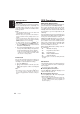 Removing the DCP 1. Press the [SRC] button for 1 second or longer to switch off the power. ! CAUTION Be sure to close the HOLD FLAP for safety when removing the DCP. Attaching the DCP 1. Insert the right side of the DCP into the main unit. 2. Insert the left side of the DCP into the main unit. 2. DCP English English The control panel can be detached to prevent theft. When detaching the control panel, store it in the DCP (Detachable Control Panel) case to prevent scratches.