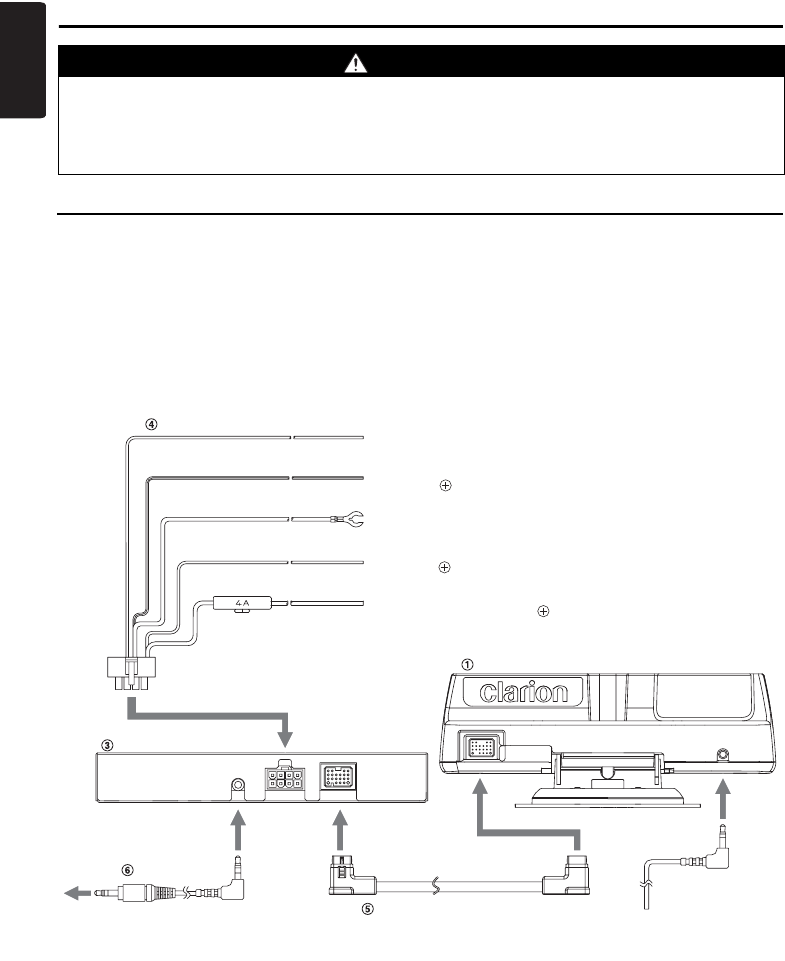 • Disconnect the negative terminal of the battery before connecting wires. Failure to do so