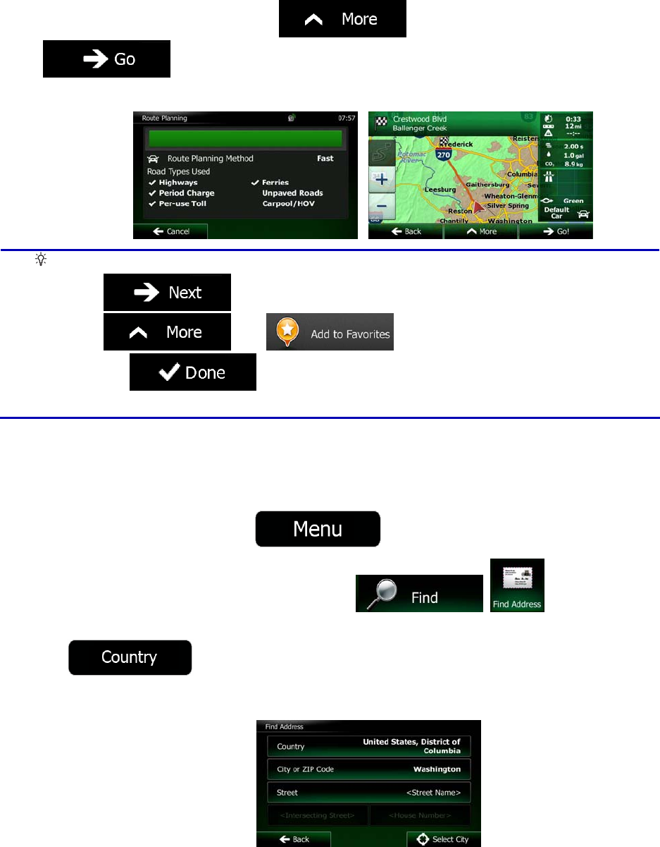 To enter an address as the destination, do as follows: