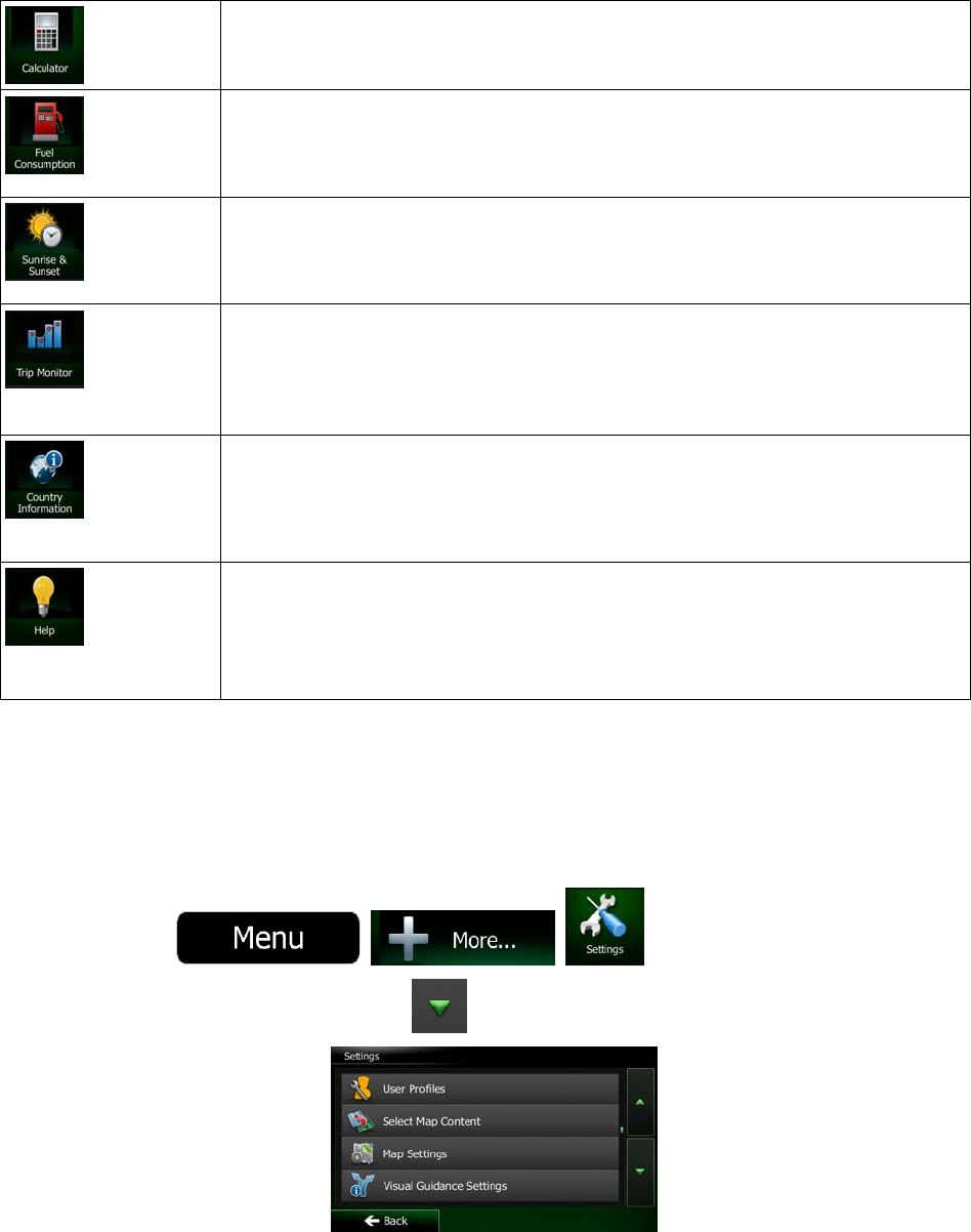 You can configure the program settings, and modify the behavior of Clarion Mobile Map. Tap the