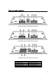 3. CONTROLS APX1301E controls and input connections APX4241E controls and input connections APX2121E controls and input connections 1. RCA input jacks 2. Front RCA input jacks 3. Rear RCA input jacks 4. Gain control 5. Front gain control 6. Rear gain control 7. Bass boost control 8. Speaker level inputs 9. Front speaker level inputs 10. Rear speaker level inputs 11. Frequency control 12. X-Over mode switch 13. Front frequency control 14. Front X-Over mode switch 15. Rear frequency control 16.