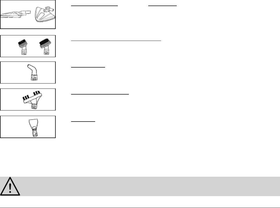 • Tile nozzle (G): for cleaning grouts, corners, nooks and crannies or