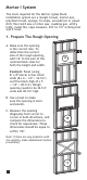 B. Use un nivel para asegurarse de que la abertura esté nivelada y a plomo. C. Mide la abertura en diagonal de esquina a esquina en ambas direcciones, y comparar las dimensiones para comprobar la cuadratura. Estas dimensiones deben ser iguales dentro de 1/8”. 1C 1B D. Si hay algún problema con la apertura, haga ajustes antes de continuar. E. Use un cepillo de espuma de polietileno para tratar el alféizar con látex pintura, adhesivo Weldbond® o emulsión asfáltica como se especifica a continuación.