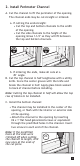 D. Install the side channels in the same manner making sure they are plumb before attaching with screws. Note: You may want to slide a glass block into the bottom channel at both corners to make sure the side channels are aligned with the bottom channel. E. Install the half top channel: • Place the half channel in the top of the opening making sure it is aligned with the side channels.