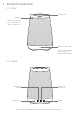 1 - Product Introduction • 1.1 - Front Touch panel Light ring Blue: Alexa is ready Red: microphone off Yellow: setup mode Bluetooth status LED Connected: solid white Disconnected: off Pairing: blinking white • 1.