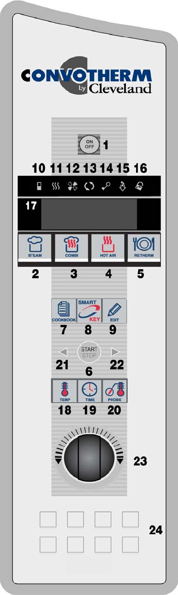 1. Press key (18) and rotate Selector Dial (23) to set oven
