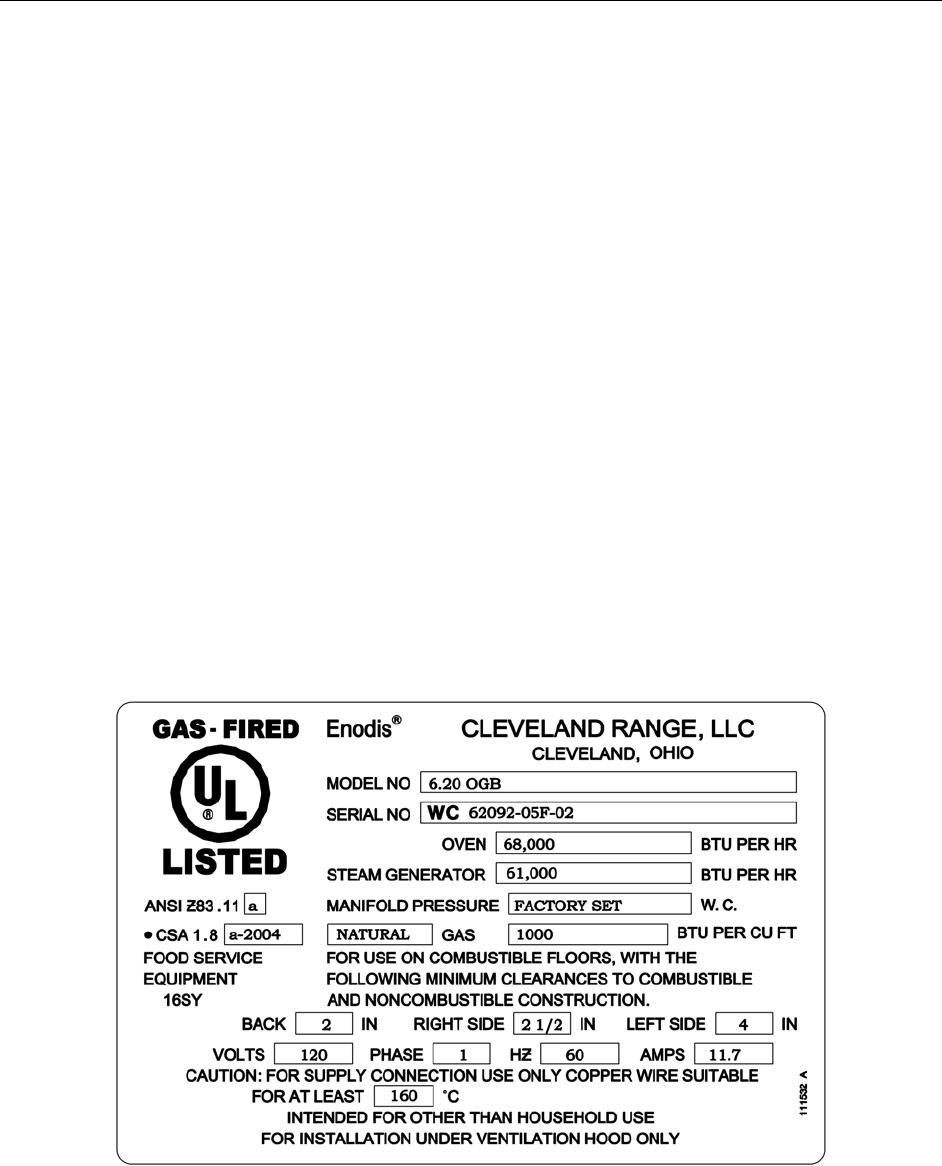 information when you contact Cleveland Range or a qualified Cleveland Range authorized service