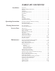 TABLE OF CONTENTS Installation Inspection . . . . . . . . . . . . . . . . . . . . . . . . . . . . . . . . . . . . . . . . . . . . . 1 Shipping Damage Instructions. . . . . . . . . . . . . . . . . . . . . . . . . . . . . 1 General. . . . . . . . . . . . . . . . . . . . . . . . . . . . . . . . . . . . . . . . . . . . . . . 1 Ventilation. . . . . . . . . . . . . . . . . . . . . . . . . . . . . . . . . . . . . . . . . . . . . 1 Clearance Requirements . . . . . . . . . . . . . . . . . . . . . . . . . . . . . .