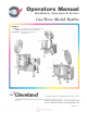 Operators Manual Installation, Operation & Service Gas Floor Model Kettles MODELS: Stationary - KGL-40, KGL-60, KGL-80, KGL-100 Tilting - KGL-40-T, KGL-60-T, KGL-80-T Short Series - KGL-40-SH, KGL-60-SH, KGL-40-TSH KGL-40 KGL-40SH KGL-40-T ™ Cleveland Enodis 1333 East 179th St., Cleveland, Ohio, U.S.A. 44110 Phone: (216) 481-4900 Fax: (216) 481-3782 Visit our web site at www.clevelandrange.com SE95003-1 Rev.