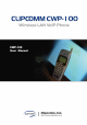 1. CWP-100 Overview 1. CWP-100 Overview Conform to Wireless LAN standard 802.11b. Operate on wireless LAN AP (Access Point) with static IP, ADSL and dynamic IP(DHCP). Provide VoIP calls. Provide CID service. Provide NAT traversal function that enables external calls with private IP address behind NAT network environment. Provide various ring melody. Provide phonebook and speed dial function. Support user-friendly menu system with ICON and LCD.
