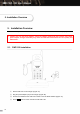 5. Installation Overview 5. Installation Overview Please check the parts of the CWP-100 and then follow the steps bellow to instal CWP-100 properly. Caution: Use only the power adaptor, charger and battery supplied by the provider. Using other power adaptor, charger and battery may cause the CWP-100 to deteriorate the voice quality and malfunction. 5.1. CWP-100 Installation 9 ① Set the CWP-100 on the charger. (Figure “A”) ② Plug the power adaptor (5V) to the charger.