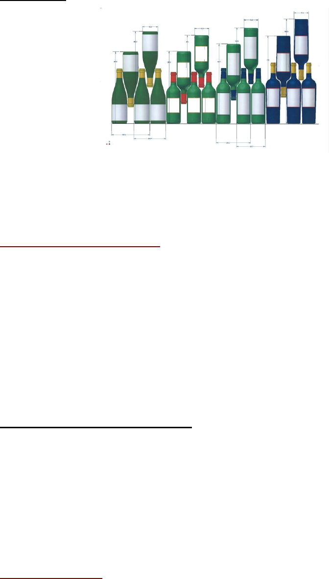 We  see  here  4  kinds  of  75  cl  wine  bottles:  Burgundy  and  Bordeaux  wine  bottles  of  different