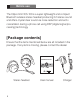 [Table of Contents] Before use Package contents Description of parts Wearing Charging Low battery Check battery level How to use Power on Power off Pairing Connecting Answering a call Making a call Ending a call Volume control Functions during a call Listening to music Summary of button functions LED indication and signal sound Supplement Troubleshooting Cautions Additional information Standard and specification Limited warranty 2 3 4 4 5 5 6 6 6 7 10 10 11 11 11 13 14 15 16 18 20 21 22 1