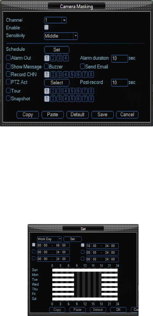 【Channel】select the channel to record when camera mask occurred.