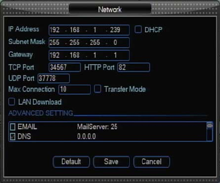 【HTTP Port】Used to connect to the DVR web server. By default the port value is 80.