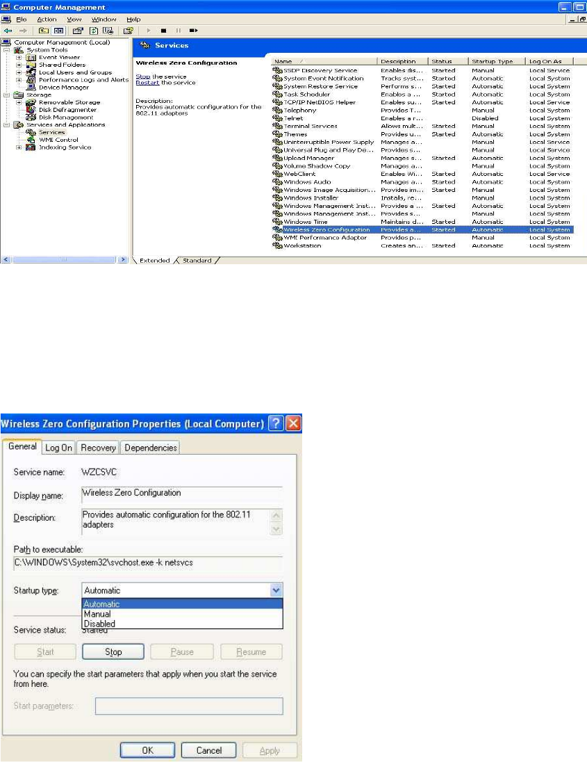 C. Double Click on Wireless Zero Configuration to go into its properties. For Startup type,